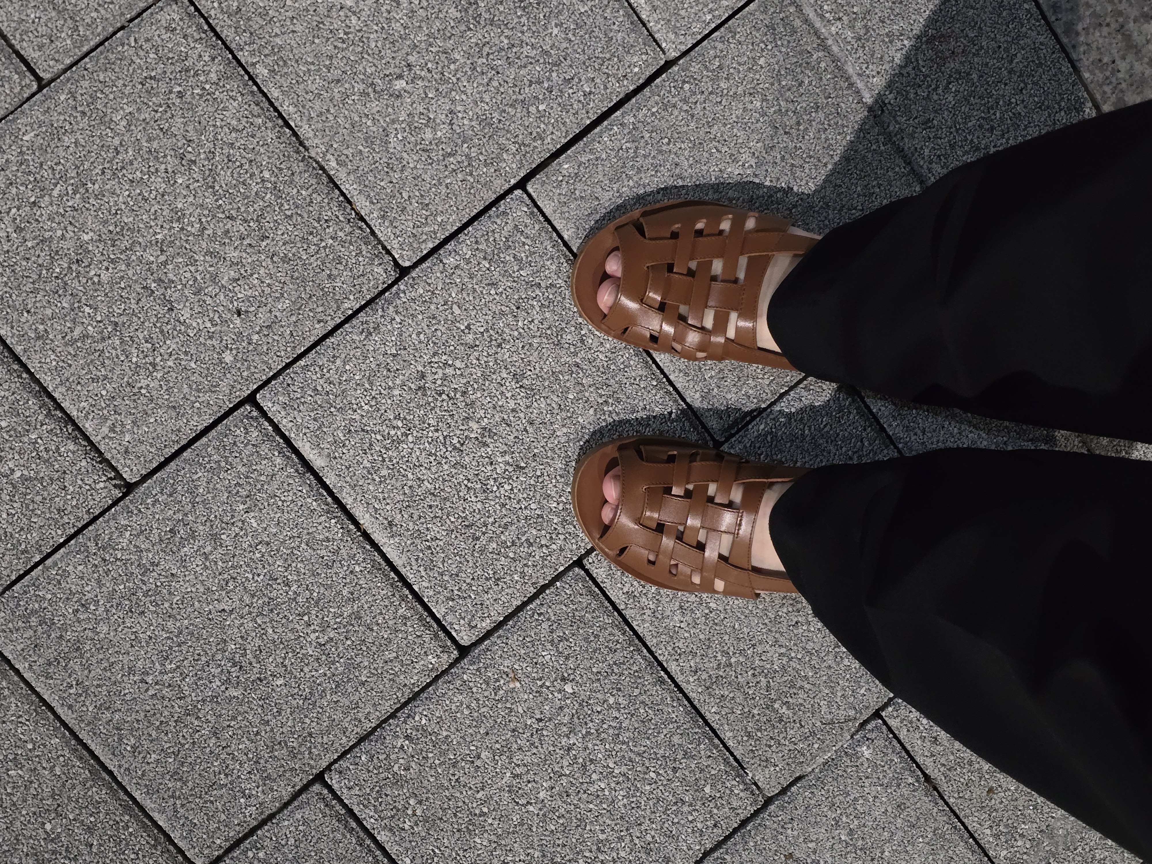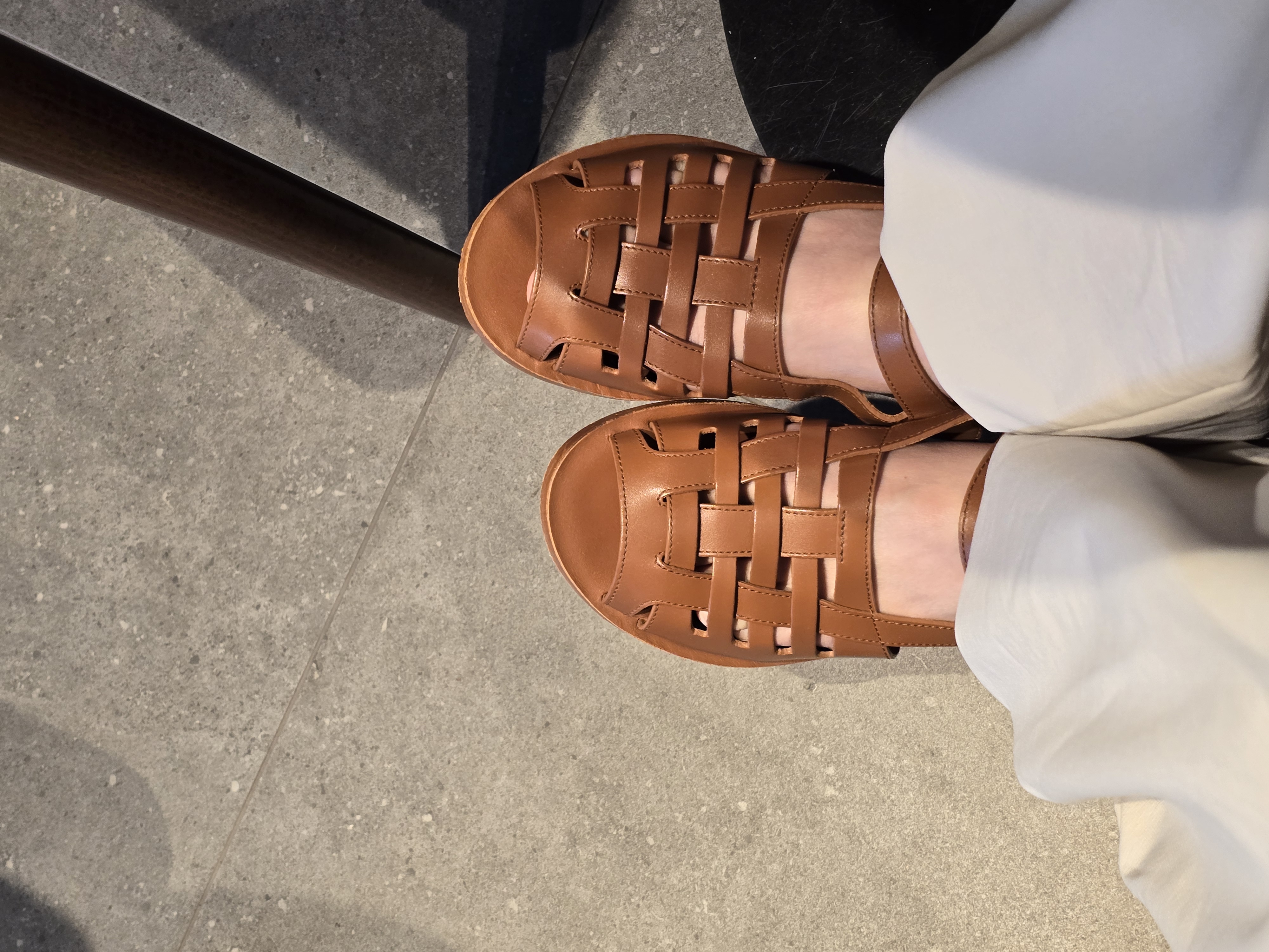 쿠에른 발레리나 신발이 편해서 쿠에른 베니스 09 샌들도 기대했는데, 착화감은 발레리나가 더 나은 것 같아요. 그래도 디자인이나 코디 면에서는 만족해요. 회사에 신고 가기도 괜찮고요.